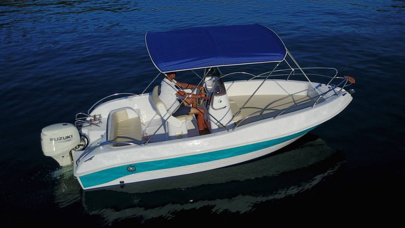 La nuova arrivata nella nostra flotta. Open center consolle, dalle spiccate qualità marine, grazie alla sua carena a V pronunciata. Barca dal bordo libero alto e dalla prua prorompente, si presta ad una navigazione sicura anche in caso di onde formate Generosi spazi all'interno che consentono di accomodare fino a 7 persone. Stivaggio ampio dovuto ai suoi intelligenti gavoni sotto coperta. Una comoda scaletta di risalita dal mare, con maniglioni grandi ed ergonomici. Il pulpito di prua aperto con lo step in tek agevola l'accesso all'imbarcazione. Barca autosvuotante.