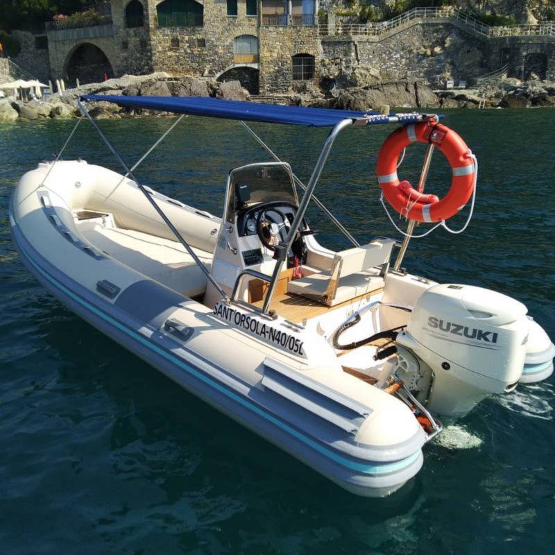 Bellissimo Gommone Sacs, da noi completamente refittato, un gioiellino del mare, ricco di comfort, caldo con il suo tek dorato, intimo per due persone, o una piccola famiglia di massimo 4 persone. Ideale per trascorrere una giornata nell'Area Marina Protetta di Portofino.